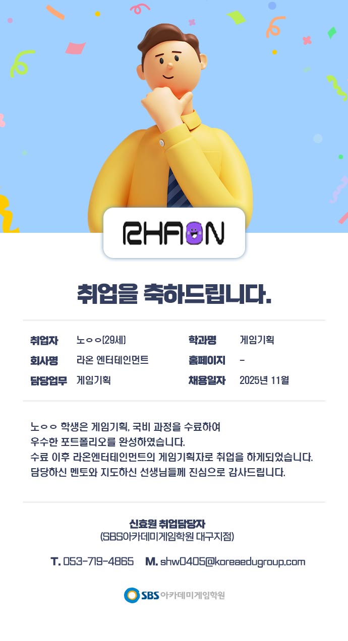 ※ 현재 SBS아카데미게임학원은 개인정보를 제3자에게 제공하지 않습니다.
